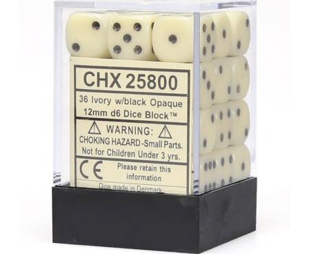 SHARED TO : 0 in stock 97000 Weight: 100 gAgesMax: 100 Ages : Players : - Game Length : CONTENT DESCRIPTION Chessex Opaque Ivory/Black Set : 12mm Six Sided Die (36) Block of Dice Log in or register to post comments Comments