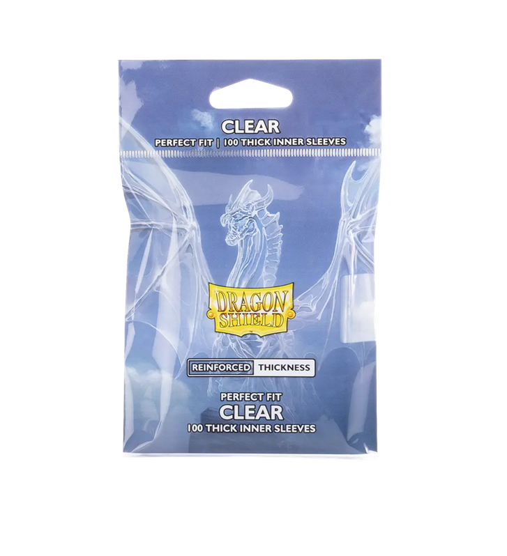 With Perfect Fit Thick Inner Sleeves, our dragons have forged our thickest inner sleeves yet – almost twice as thick as our regular Perfect Fits! The reinforced thickness ups the protection against blunt force trauma from claws and stray coin flips. The extra sturdiness also makes handling much easier while double-sleeving. Perfect Fit Thick Inner Sleeves are top-loading and fit smoothly inside regular Dragon Shield sleeves – perfect for double-sleeving. Both front and back are Clear, and the sleeves are 100% archival safe (acid- and PVC-free). Size: Standard Color: Clear
