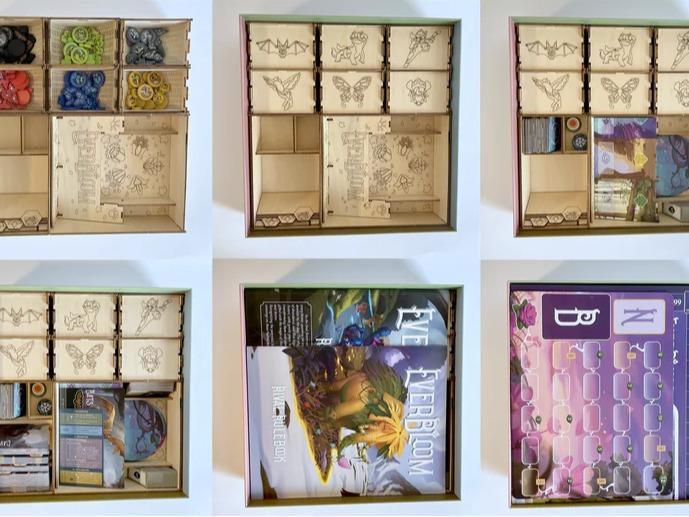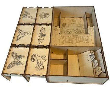 Keep your Everbloom game organized in style with the Deluxe Wooden Insert, designed for a perfect fit and easy setup. This premium insert securely stores all components, making every game night smooth and effortless!