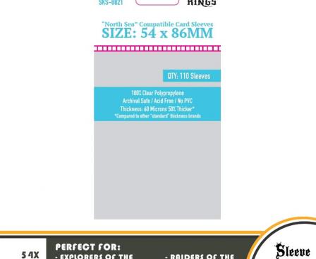 Sleeve Kings “North Sea Compatible” Sleeves are sized to fit cards 54 X 86 MM.