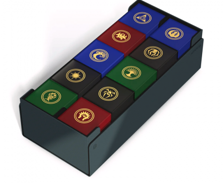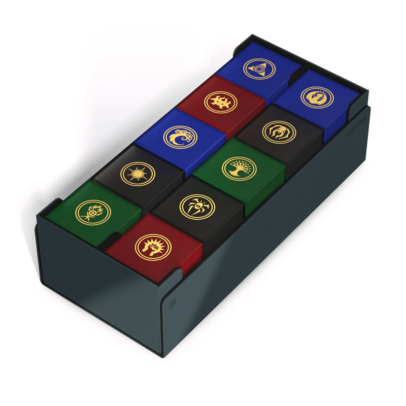 Gather the guilds of Ravnica! The stunning Arkhive 1000+ Xenoskin from the "Guild Summit" series is the perfect storage place for larger collections, a cube, or several deck boxes - for example our ten Boulder 100+ in the guild design. The lid, which is completely removable for the first time on the Arkhive, is attached on both sides with a strong magnetic closure as well as our trusted ZnapClaw mechanism and bears the symbol of the Guildpact. The Arkhive 1000+ Xenoskin is made from durable Xenoskin material.