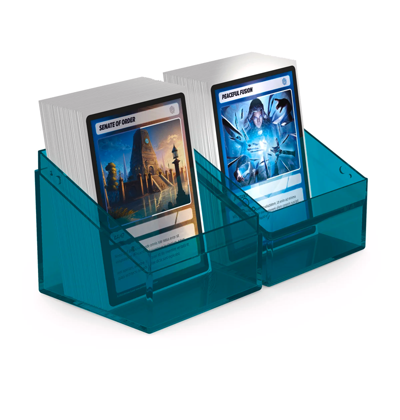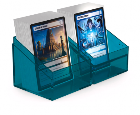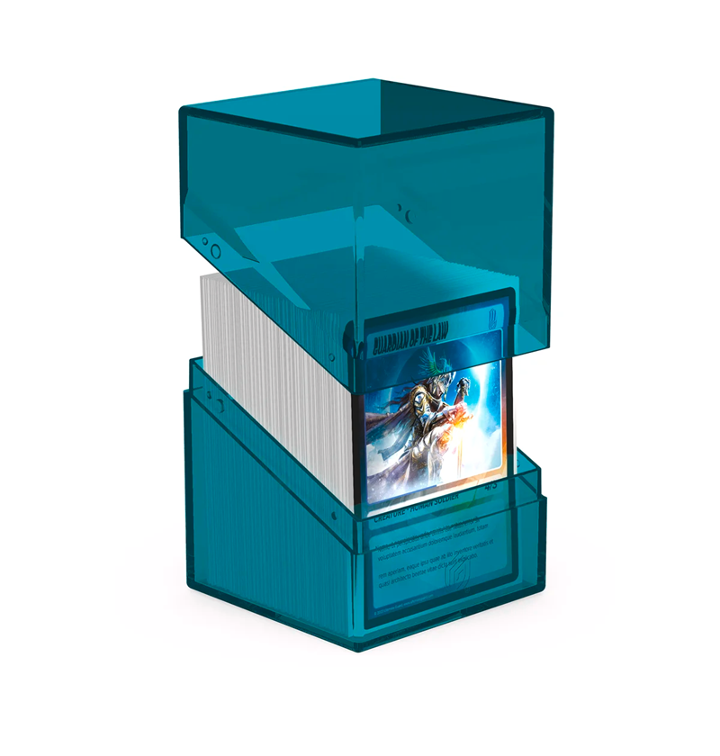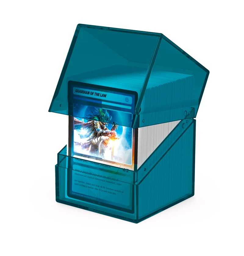 The legend is back in an all new look: with the transparent Boulder 100+ Clear, you'll always know exactly which cards are in your deck box. The Boulder 100+ Clear is a durable and reliable deck box with a secure closure. It can hold up to 100 double-sleeved or 120 single-sleeved cards from all popular trading card games like Magic: The Gathering, Pokémon, Lorcana, One Piece, or Yu-Gi-Oh!