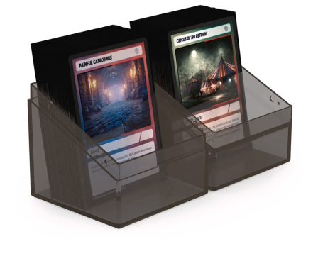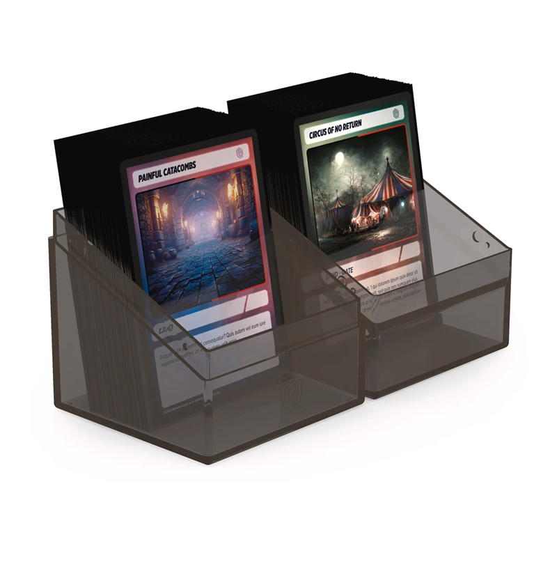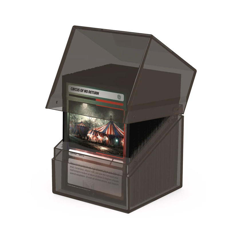 The legend is back in an all new look: with the transparent Boulder 100+ Clear, you'll always know exactly which cards are in your deck box. The Boulder 100+ Clear is a durable and reliable deck box with a secure closure. It can hold up to 100 double-sleeved or 120 single-sleeved cards from all popular trading card games like Magic: The Gathering, Pokémon, Lorcana, One Piece, or Yu-Gi-Oh!