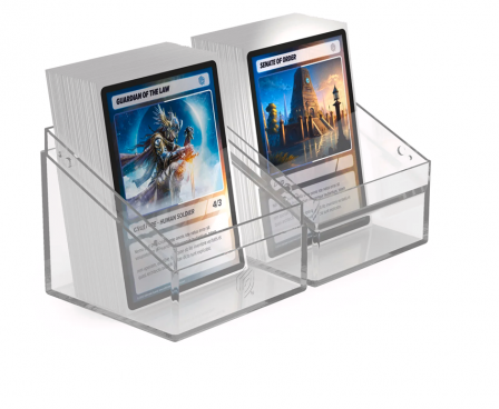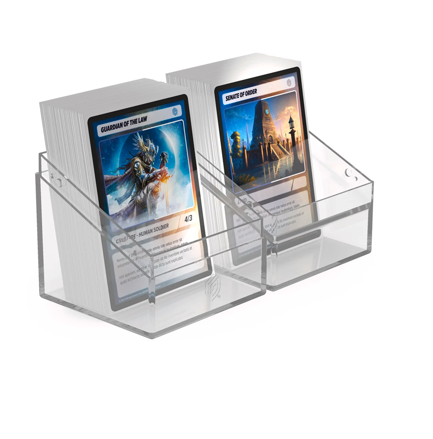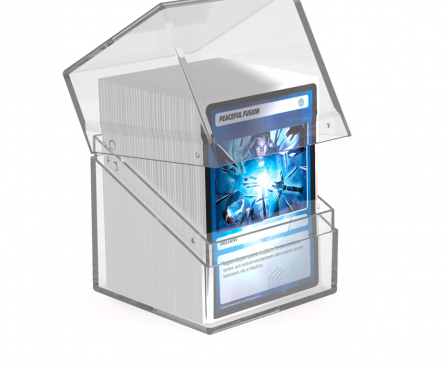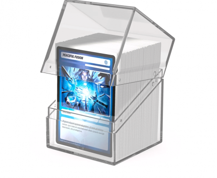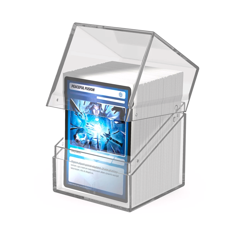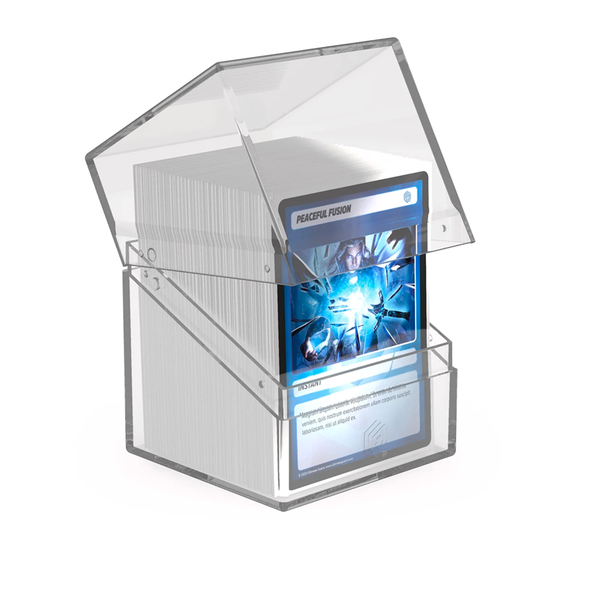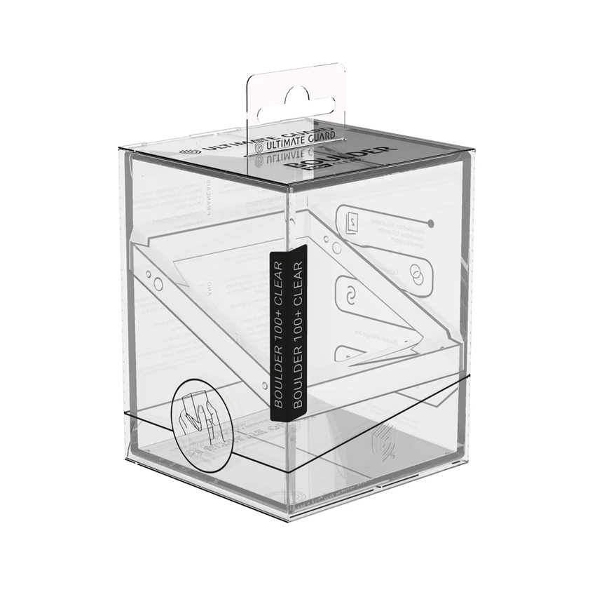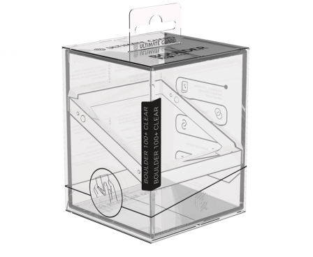 The legend is back in an all new look: with the transparent Boulder 100+ Clear, you'll always know exactly which cards are in your deck box. The Boulder 100+ Clear is a durable and reliable deck box with a secure closure. It can hold up to 100 double-sleeved or 120 single-sleeved cards from all popular trading card games like Magic: The Gathering, Pokémon, Lorcana, One Piece, or Yu-Gi-Oh!