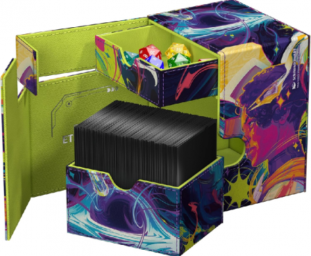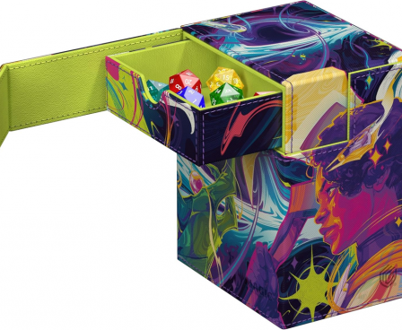 The Flip'n'Tray 133+ Xenoskin is a high-quality TCG deck box that offers premium card protection thanks to its resistant Xenoskin material, microfiber inner lining, and strong magnetic closure. The deck box has an integrated and removable accessory tray for dice that can be accessed independently and is printed in full color with officially licensed artworks from Magic: The Gathering’s upcoming set "Edge of Eternities". The Flip’n’Tray 133+ Xenoskin is optimized to hold 133 double-sleeved or 160 single-sleeved cards in Ultimate Guard sleeves.