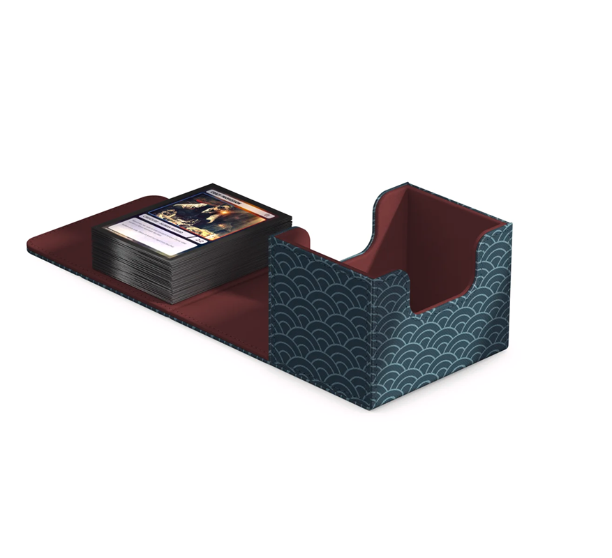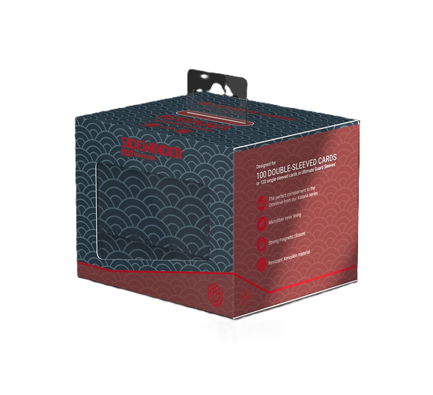 The second part of our series "Katana: The Shogun's Journey" includes four stunning Sidewinder 100+ Xenoskin in the designs Seigaiha (dark blue/dark red), Ajiro (green/light blue), Kikko (white/blue), and Shippou (blue/dark red). With their traditional Japanese patterns, the deck boxes perfectly match the Omnihive 1000+ Xenoskin from the Samurai's Chest, the first part of the series. The full-color printed Sidewinders made of resistant Xenoskin material offer space for 100 double-sleeved cards (or 120 in single sleeves) and are reliable and safe deck boxes for all popular TCGs such as Magic: The Gathering, Pokémon, One Piece, Yu-Gi-Oh!, or Lorcana. Each of the four Sidewinder comes with a new chapter to our Katana story, so collect them all to join the young warrior's journey!