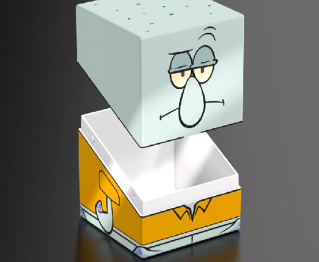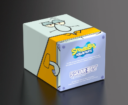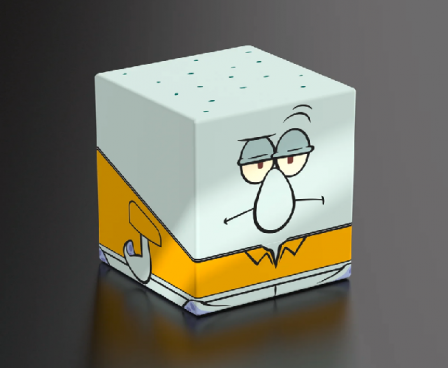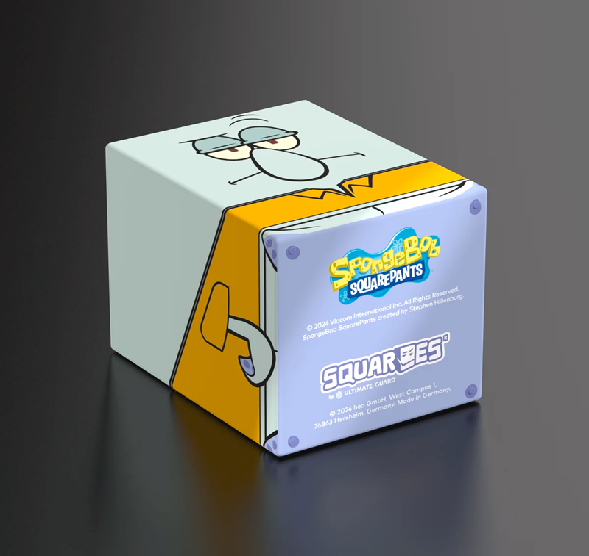 Collectible box for storing TCG decks, tabletop gaming accessories, and/or collectibles. The Squidward Squaroe from the SpongeBob SquarePants™ edition holds up to 100 cards in double protective sleeves if used as a deck box. Squaroes are made from 78% renewable recources and fit perfectly into the separately available Collectors Case.