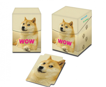WOW much cards! So protect! Bring some extra fun to your next card gaming session with this official "Doge" PRO-100+ Deck Box. The box holds up to 110 standard (Magic) sized cards in Deck Protector sleeves. Constructed with non-PVC rigid polypropylene materials and designed with a self-locking lid, this deck box is sure to win the attention of your playing group. Beneath the lid is a curved thumb notch for easy access to your valuable playing cards. A bonus deck divider is included with the box.