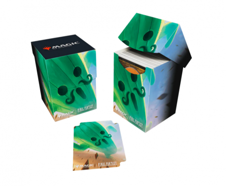 The Magic The Gathering FINAL FANTASY 100+ Deck Box card storage container features vibrant, full-color artwork and includes one deck divider. Made with archival-safe, non-PVC, rigid polypropylene materials, you can store up to 100 double-sleeved cards with confidence. The self-locking lid keeps your cards securely stored when not in use, while also offering easy access. Sized for standard-size trading cards.