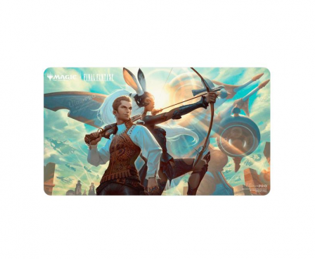Playmats feature popular Magic The Gathering FINAL FANTASY Balthier & Fran artwork and enhance your gameplay experience! Each playmat is made with a soft fabric top to reduce damage to cards, and the non-slip rubber backing keeps the playmat from shifting during use. With dimensions of approximately 24 in. x 13.5 in., a playmat also makes an excellent oversize mousepad for home or office.