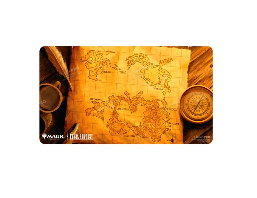 Playmats feature popular Magic The Gathering FINAL FANTASY World Map artwork and enhance your gameplay experience! Each playmat is made with a soft fabric top to reduce damage to cards, and the non-slip rubber backing keeps the playmat from shifting during use. With dimensions of approximately 24 in. x 13.5 in., a playmat also makes an excellent oversize mousepad for home or office.
