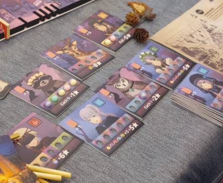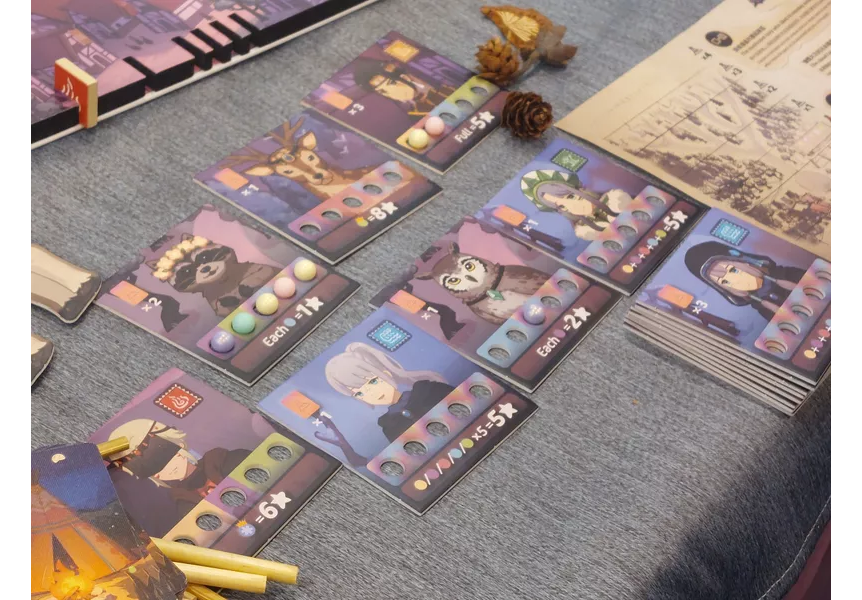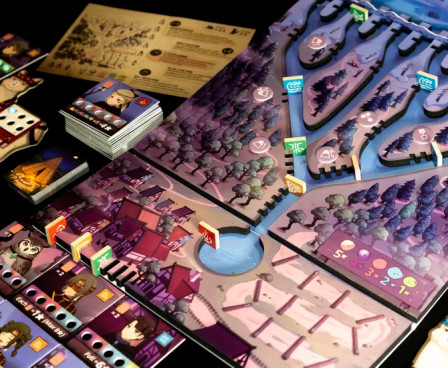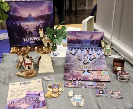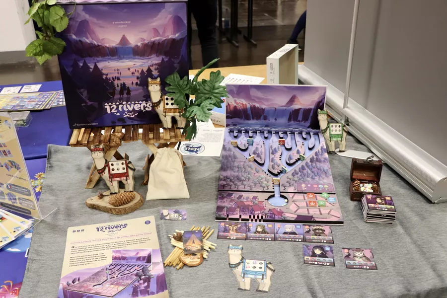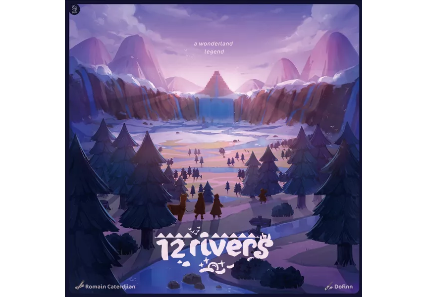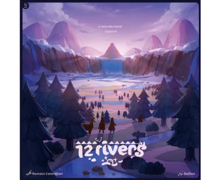 In 12 Rivers, players lead one of four tribes and take turns sending warriors to climb the mountain. The warriors camp near the river to collect Nature's bounties and bring these resources to villagers in need. Warriors can collect more valuable bounties if they move toward the origin of the river, but more camp tools have to be paid as well. After five rounds, the bounties to the villagers will be scored for players based on the rarity.