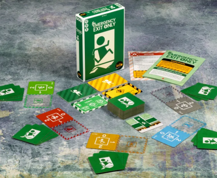 In Emergency Exit Only, each player in turn will play a tile to advance to the exit. But you’ll be playing the tiles on top of each other, so you’ll be putting your spatial visualization skills to the test! Memorize your escape route and make your way through the building together. Play your “Lost tile” when you think you’re lost and the path is dead-end. At the end of the round, lay out your escape route and find out who survived to score points! Start a new round and add one more constraint to add even more panic to the table