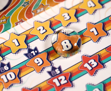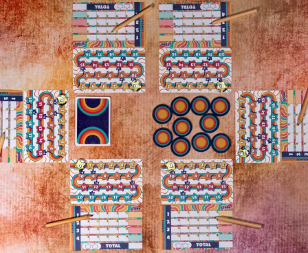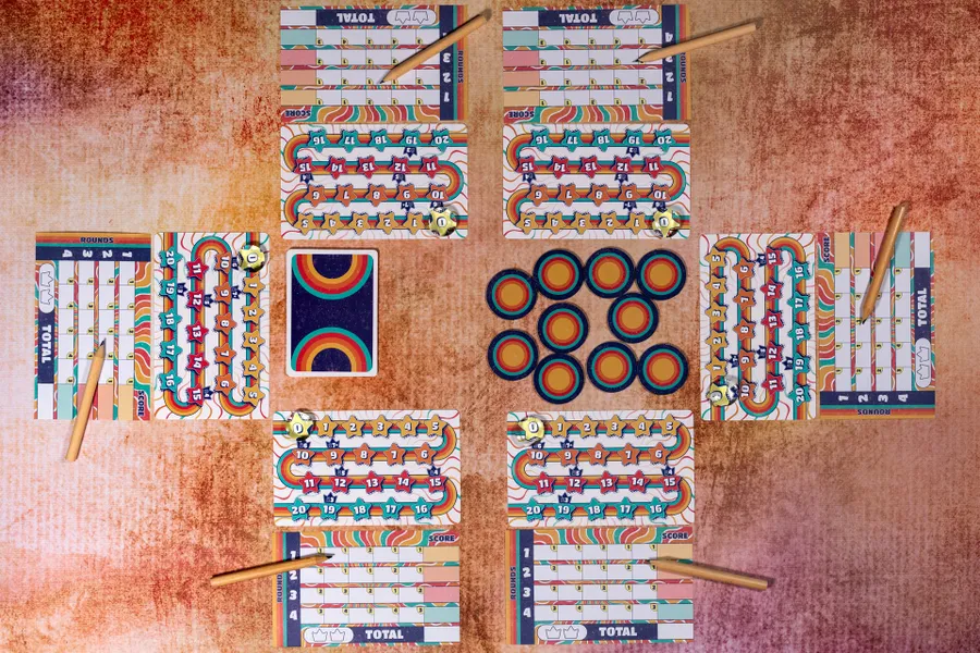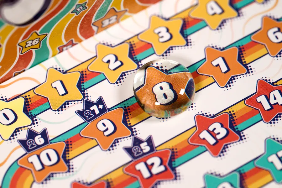 At the start of a round, all players secretly write down five numbers between 1 and 49 on their player sheet, with some numbers being restricted. Someone then starts counting up from 1 to 50, and if you wrote down a called number, raise your hand. If you are the only player who wrote that number, you become the leader and continue to count, scoring 1 point for each number that you count. As soon as exactly one other player raises their hand, they take over as leader. If two or more players raise their hand at the same time, they cancel one another out, and the current leader keeps counting.