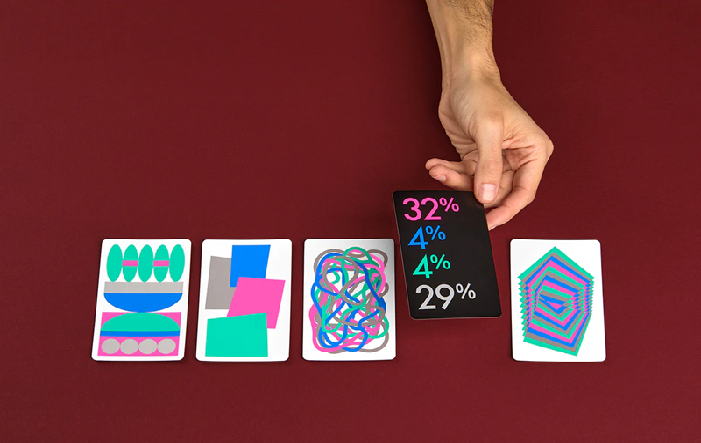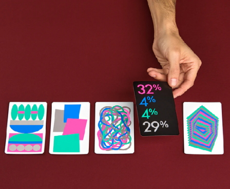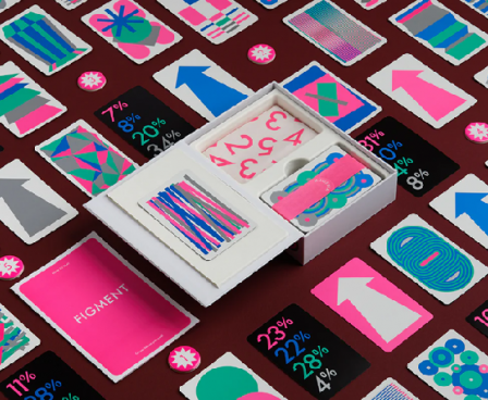 Figment is a mindbending game of visual perception. Each card features unique art using the same four colors: your goal is to line them up in a row so each card has more of one color than the card before it.