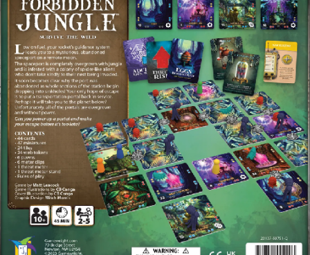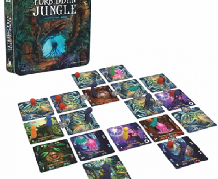 In Forbidden Jungle, your team has crash-landed on a mysterious jungle planet, and you need to work together to survive. Search the ruins of an abandoned outpost for an elusive escape portal, all while fending off an ever-growing horde of venomous creatures and an escalating chain of collapsing locations. Shift tiles to power up the portal and live to see another day!
