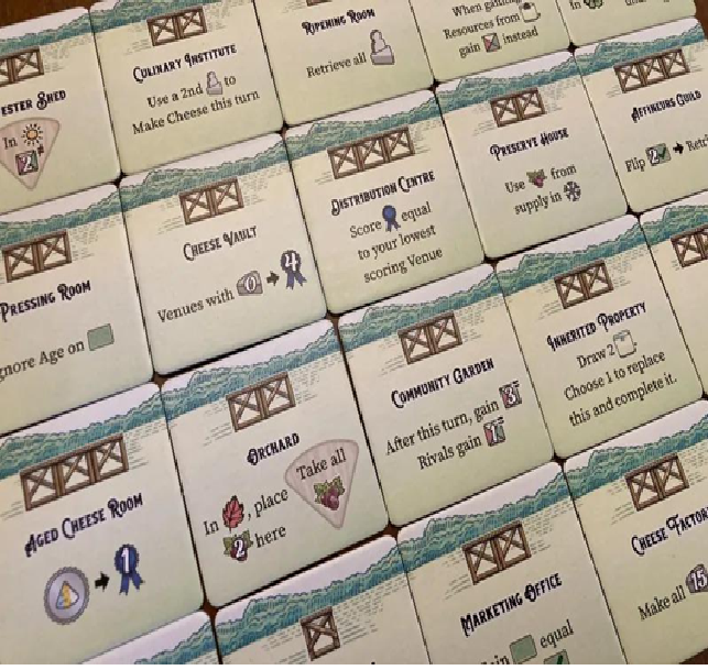 Formaggio is a standalone expansion for Fromage. With both games put together, you can combine any 4 board quadrants, and draft any combination of structure tiles for more variety and more paths to victory.