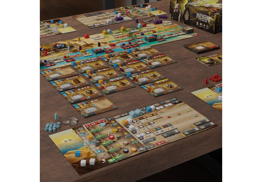 Inventors of the South Tigris is set during the height of the Abbasid Caliphate, circa 850 AD. Over the past decades, Baghdad has become home to thousands of mathematicians, astronomers, chemists, and physicians. As inspired innovators, players are eager to develop clever contraptions to impress their peers. Will your ingenious devices adorn the House of Wisdom, or are they destined for dust and decay?