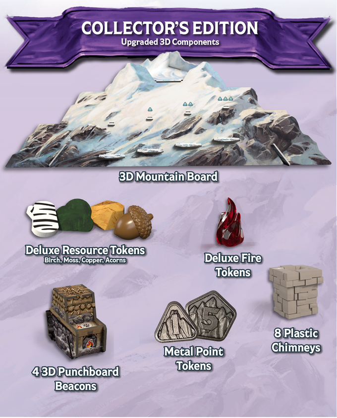 Silverfrost is the next standalone edge of the map series of Everdell. Beyond the snow-capped Spirecrest mountains to the south of Everdell Valley, lies the bold country of Silverfrost. It is your task to build and maintain a city in this challenging landscape. You must clear the piling snow, burn the fires to keep your citizens warm and prosperous, and complete important quests for the Ranger’s Guild.