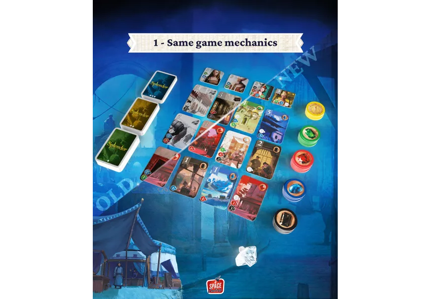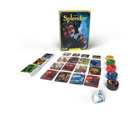 Splendor is a game of chip-collecting and card development. Players are merchants of the Renaissance trying to buy gem mines, means of transportation, shopsall in order to acquire the most prestige points. If you're wealthy enough, you might even receive a visit from a noble at some point, which of course will further increase your prestige.