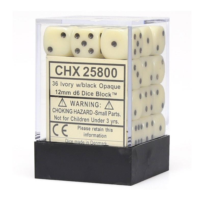 Chessex Opaque Ivory/Black Set of 12mm D6 36 Dice (CHX 25800)