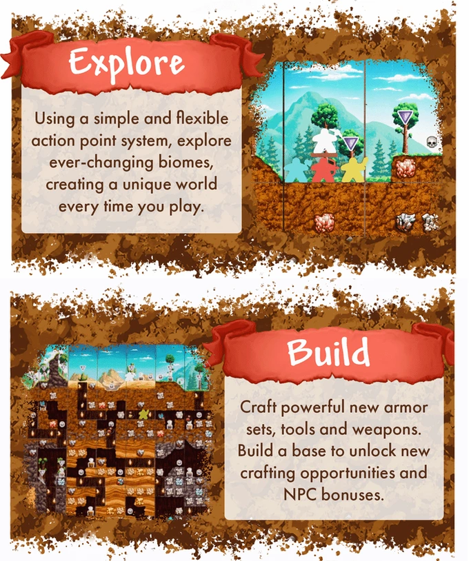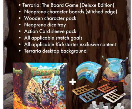 Terraria: The Board Game feels like Terraria, distilling the fun of the digital gameplay loop while adding the satisfying tactility and in-person excitement of modern tabletop games. So, whether you’ve played the videogame or not, clear your table, invite your friends and bring the fun of Terraria to game night!