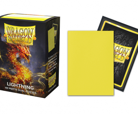 Dragon Shield Dual Matte sleeves. Clear front and a textured matte back. Fully opaque sleeves with a black interior, an elegant backdrop for black bordered cards.