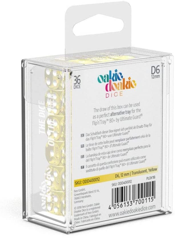 Oakie Doakie 36 Dice - D6 12 mm Translucent Yellow