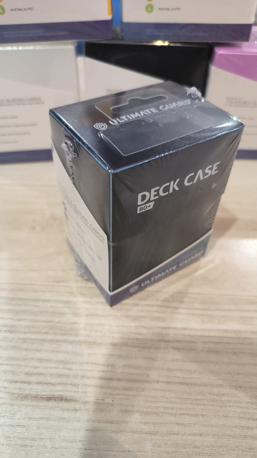 Holds up to 80 Standard gaming double sleeved cards. Self-locking lid design with write-on strip. Thumb notch for easy access to cards. 1 divider inside. (Sleeves, cards not included)