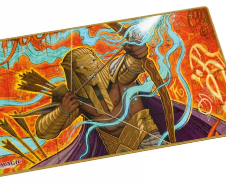 The revved-up racers from Magic: The Gatherings's Aetherdrift are waiting to hit the gas on the Special Edition Play-Mat Revved-Up Racers! The Play-Mat in stickerbomb style, with officially licensed MTG artwork in the standard size 61x35cm, improves the gaming experience and protects cards and accessories during gameplay with its cushioned top and anti-slip underside. The Play-Mat comes with a high-quality stitched edge.