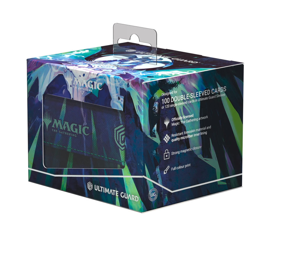 The Special Edition Ghostfire Sidewinder 100+ Xenoskin, with a spectacular shimmering embossing on the microfiber interior, is printed with officially licensed artworks from Magic: The Gathering’s Tarkir: Dragonstorm set. This high-quality deck box, made from durable Xenoskin material with a reliable magnetic closure, holds up to 100 double-sleeved or 120 single-sleeved cards.