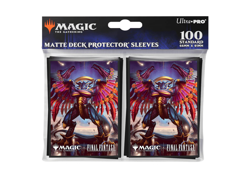 The Magic The Gathering FINAL FANTASY100ct Deck Protector sleeves feature full-color artwork and are made with our proprietary ChromaFusion Technology to prevent peeling. Archival-safe polypropylene materials ensure you can sleeve your cards with confidence. Sized for standard size trading cards measuring 2.5 in. x 3.5 in. The matte finish offers a glare-free, camera-ready play experience!