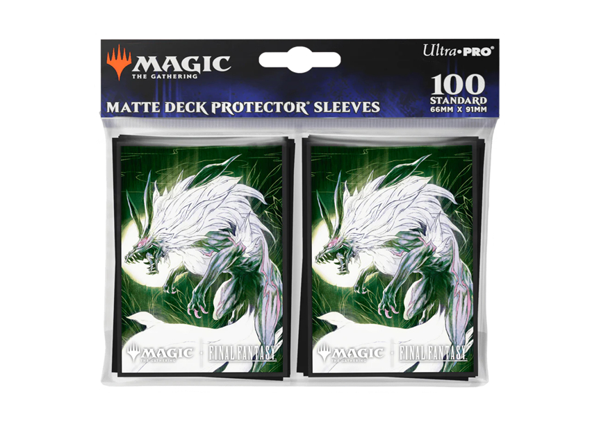 The Magic The Gathering FINAL FANTASY100ct Deck Protector sleeves feature full-color artwork and are made with our proprietary ChromaFusion Technology to prevent peeling. Archival-safe polypropylene materials ensure you can sleeve your cards with confidence. Sized for standard size trading cards measuring 2.5 in. x 3.5 in. The matte finish offers a glare-free, camera-ready play experience!