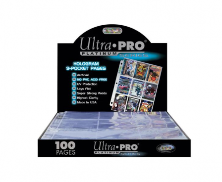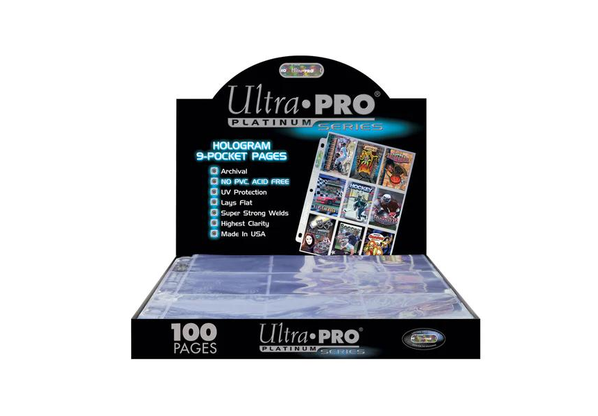 As Ultra PRO's flagship line storage pages, these Platinum Series pages are the premier choice for collectible trading cards, postcards, photos, artist sketch cards, ticket stubs, coupons, and so much more. Each page bears Ultra PRO's hologram quality & authenticity seal on the spine. These pages are 3-hole punched and sized to fit in Ultra PRO's standard-size 3-ring albums.