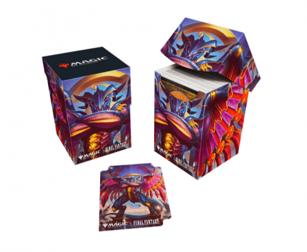 The Magic The Gathering FINAL FANTASY 100+ Deck Box card storage container features vibrant, full-color artwork and includes one deck divider. Made with archival-safe, non-PVC, rigid polypropylene materials, you can store up to 100 double-sleeved cards with confidence. The self-locking lid keeps your cards securely stored when not in use, while also offering easy access. Sized for standard-size trading cards.