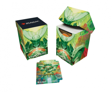 The Magic The Gathering FINAL FANTASY  100+ Deck Box card storage container features vibrant, full-color artwork and includes one deck divider. Made with archival-safe, non-PVC, rigid polypropylene materials, you can store up to 100 double-sleeved cards with confidence. The self-locking lid keeps your cards securely stored when not in use, while also offering easy access. Sized for standard-size trading cards.