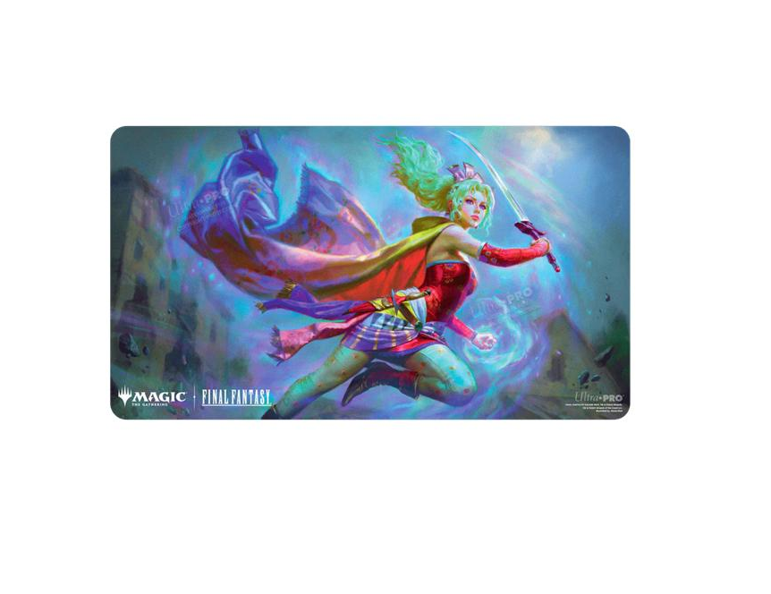 Playmats feature popular Magic The Gathering FINAL FANTASY Terra, Herald of Hope (Commander) artwork and enhance your gameplay experience! Each playmat is made with a soft fabric top to reduce damage to cards, and the non-slip rubber backing keeps the playmat from shifting during use. With dimensions of approximately 24 in. x 13.5 in., a playmat also makes an excellent oversize mousepad for home or office.