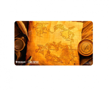 Playmats feature popular Magic The Gathering FINAL FANTASY World Map artwork and enhance your gameplay experience! Each playmat is made with a soft fabric top to reduce damage to cards, and the non-slip rubber backing keeps the playmat from shifting during use. With dimensions of approximately 24 in. x 13.5 in., a playmat also makes an excellent oversize mousepad for home or office.