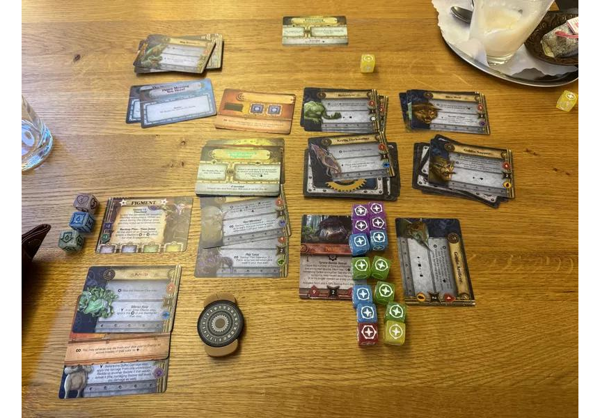 If you roll enough successes, you complete a card’s challenge and gain its rewards. If you don’t, you take damage and move on to the next card – unless, of course, your HP stat is reduced to 0, costing you the game. If you manage to make it through an entire deck, you take on one of the deck’s final bosses, attempting to score enough hits against this powerful enemy to claim ultimate victory.