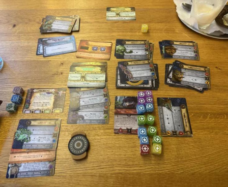Of course, it’s never so easy that you’d want to spend all of your dice on a single card. In addition to your HP Stat, you’re also keeping track of your Strategy (which controls how many rerolls and items you have) and your Recovery, which controls how many dice return to your pool after taking on a challenge. If you roll more dice than your Recovery, those dice are exhausted, lowering your pool for your subsequent challenges. It’s a game of pressing your luck, strategic decision-making, and resource management. We think you’re going to love it!