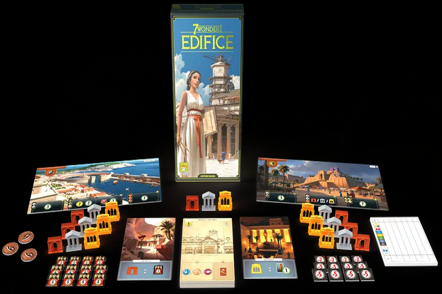 7 Wonders: Edifice contains two new double-sided wonders; one of them, Ur, can only be used with this expansion, while Carthage can be used in any game of 7 Wonders.