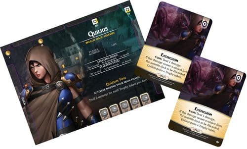 War Eternal is a standalone game compatible with the cooperative deck-building game Aeon's End. Players struggle to defend Gravehold from The Nameless and their hordes using unique abilities, powerful spells, and an all-new cast of dynamic characters. Featuring a number of innovative mechanisms, including a variable turn order system that simulates the chaos of an attack and deck management rules that require careful planning, War Eternal can be played alone or combined with other Aeon's End content for a game experience like no other.