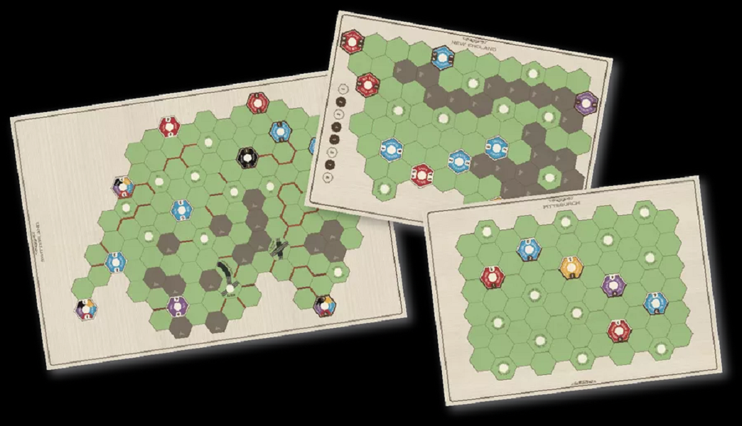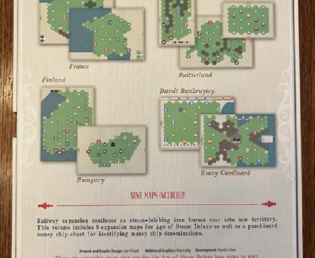 Each Expansion Volume of the set contains multiple maps on mounted game boards, plus the rules and any extra components needed to play each one.