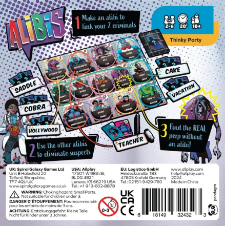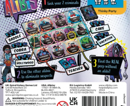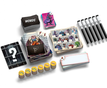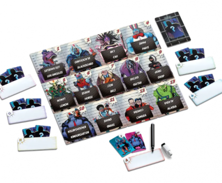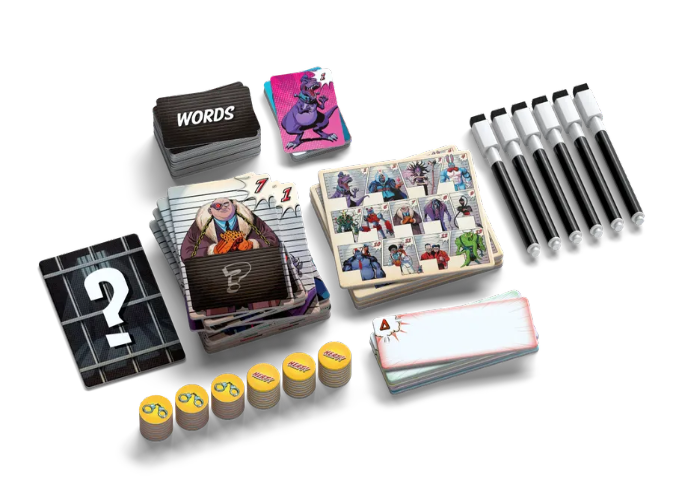 Whodunnit? In Alibis, a suspicious lineup of supervillains lies before you and your team, and you’re tasked with finding the true criminal.