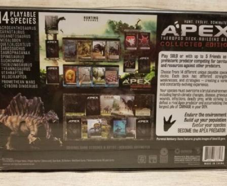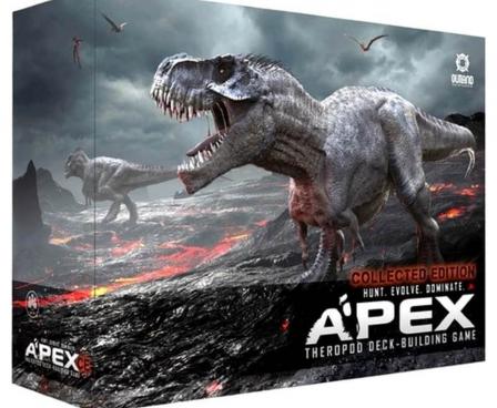 Apex is a deck-building game, played solo or with up to 3 friends (publisher recommends 2-4 players). You play as a prehistoric predator competing for territory and resources against other predators. Each playable species has a unique deck to master. Each deck has different strengths, weaknesses, and strategies—creating a varied and constantly evolving experience.