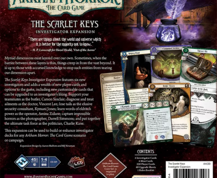 The Scarlet Keys is the newest campaign expansion to Arkham Horror: The Card Game. Just like with Edge of the Earth, you will find only player cards in the Investigator Expansion and only scenario cards within the Campaign Expansion. Whether you want one expansion or both, the world of Arkham Horror just got bigger!