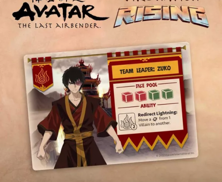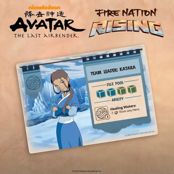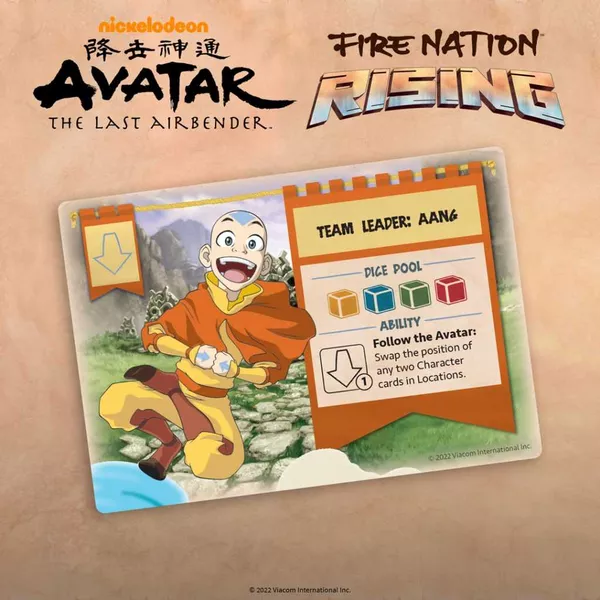 Avatar: The Last Airbender Fire Nation Rising is a cooperative card and dice game for 1-5 players who take command of Avatar Aang, Katara, Sokka, Toph, and Zuko as they fight back against the