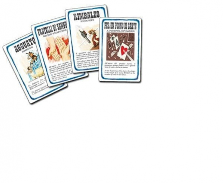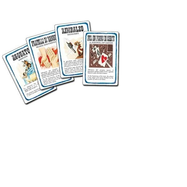 BANG! A Fistful of Cards functions similarly to High Noon with fifteen cards, fourteen of which are shuffled at random into a deck with the final card being "A Fistful of Cards", which has players facing a number of Bang!s each turn equal to the number of cards in hand.