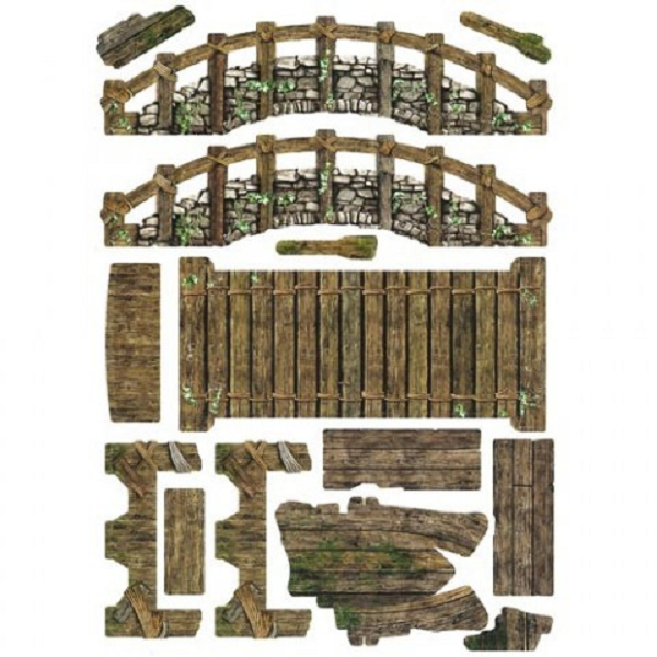 The terrain is supplied flat-packed on high-quality, high-density card, printed in full colour on both sides, so no painting required! The terrain requires assembly, and some smaller parts will require glue.