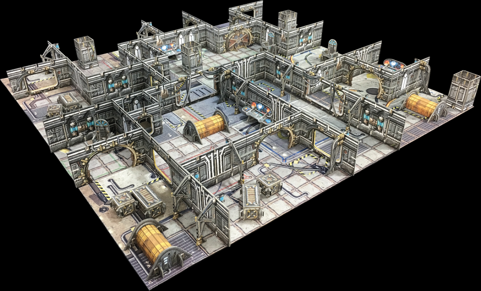 The terrain is supplied flat-packed on high-quality, high-density card, printed in full colour on both sides, so no painting required! The terrain requires assembly, and some smaller parts will require glue. Please see the Tutorials page for more details and full instructions.